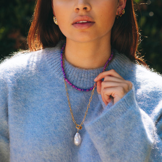 To keep your 14K gold-plated Bonnie piece shining beautifully for as long as possible, we recommend treating it with a little extra care. Avoid contact with water, perfume, lotions, sweat, and heat, as these can affect plating over time.