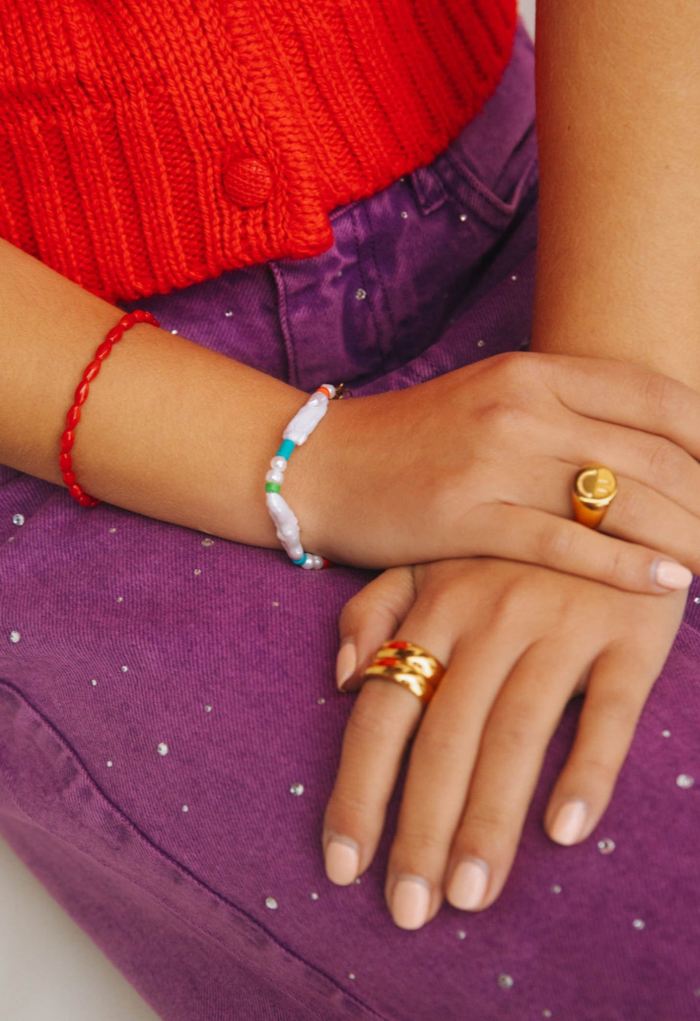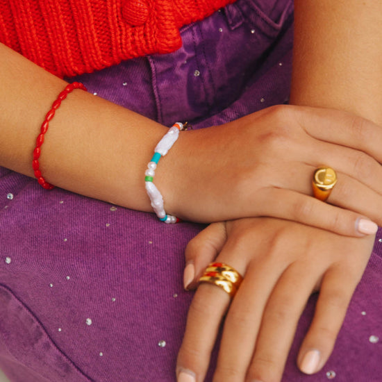 To keep your 14K gold-plated Bonnie piece shining beautifully for as long as possible, we recommend treating it with a little extra care. Avoid contact with water, perfume, lotions, sweat, and heat, as these can affect plating over time.