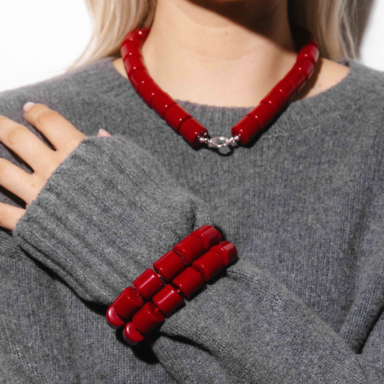 A cute match for your Cherry Kiss Necklace! Handcrafted with cherry-coloured beads.