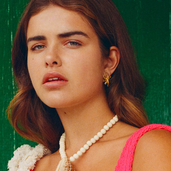 To keep your 14K gold-plated Bonnie piece shining beautifully for as long as possible, we recommend treating it with a little extra care. Avoid contact with water, perfume, lotions, sweat, and heat, as these can affect plating over time.
