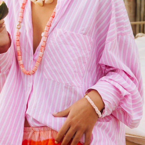 This Necklace is designed to bring a touch of organic charm to your daily look. Featuring beautiful pink shells with a soft, delicate hue and stunning natural texture, it’s the perfect piece for a dreamy, sophisticated vibe.