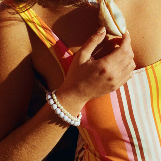 To keep your 14K gold-plated Bonnie piece shining beautifully for as long as possible, we recommend treating it with a little extra care. Avoid contact with water, perfume, lotions, sweat, and heat, as these can affect plating over time.