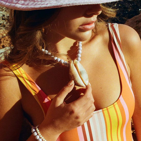 To keep your 14K gold-plated Bonnie piece shining beautifully for as long as possible, we recommend treating it with a little extra care. Avoid contact with water, perfume, lotions, sweat, and heat, as these can affect plating over time.